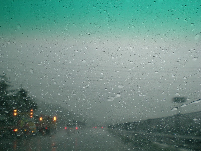 突然バケツの底が抜けたかのような大雨!?本当に前が見えません!!しかもこの写真撮影した時、ワイパーは最速でこの状態です。雨が激しすぎてワイパーを最速にしても水滴拭き取るスピードがおいつかない感じでした!!