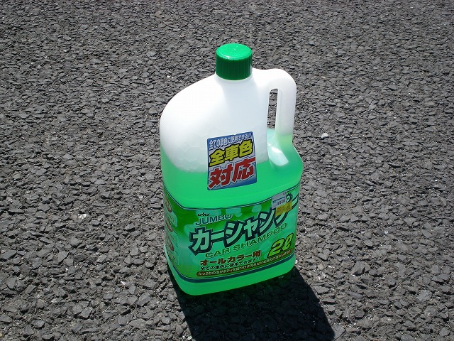 別に何の変哲もない普通のシャンプーです!最近は高級車用みたいな専用のシャンプーもあるみたいですけれども私は別にこだわりはないので普通のシャンプー使ってます。唯一こだわると言うか重要視してるのは泡立ちでしょうか?基本的にスポンジでこすると言うよりも泡でなでるって言う感じに洗うので泡立ちは結構重要です。ちなみに値札が付いてますが、特価で2リットルで504円だったのが380円で買ってきたみたいです!!