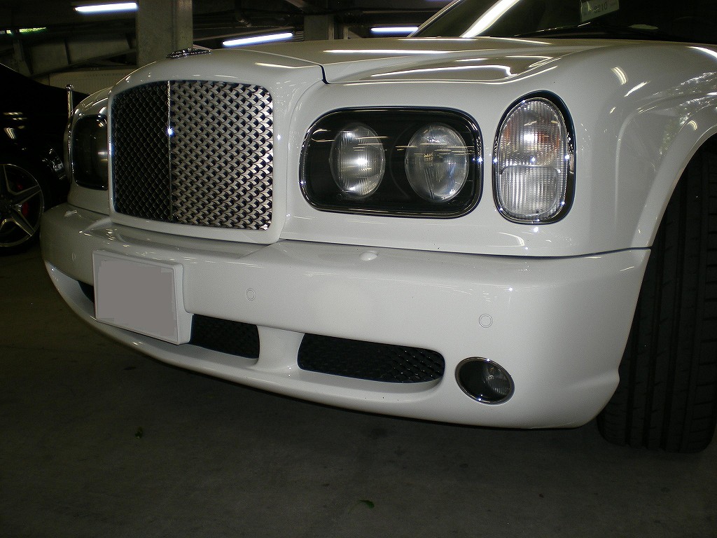 輸入車の大型セダンで良く好まれる傾向に威圧感や迫力があります。迫力のあるフロントマスクが好まれる事を知っているせいか、メーカー側も上品でありながら威圧感のある車をたくさん出しています。メルセデスベンツのAMG、BMWのMシリーズ、アルピナあたりが筆頭でしょうか?ではこの威圧感とはどのような造型で出やすいのかをちょっと考えてみました。色々な車種のフロントマスクを見比べたりこの手の車が好きな方の話を聞いてみたところ「グリル等のメッシュ処理されたダクトとライトの面積が大きければ大きい程威圧感が出る。」と言う方向性が見えました。確かにAMGやMシリーズを見てみるとどのグレードもかなりの開口部が確認出来ます。ヘッドライトとグリル、フォグランプやフロントダクトとほぼすべての部分に何かしらのダクトやライトが入っています。「これで解決!」と思いきや、全然解決じゃなかったです。上記写真をご覧下さい。みなさんご存知、世界トップクラスの高級車ベントレー・アルナージですがご覧の通りダクトにもライトにも使っていないスペースがかなりあります。ヘッドライトからフォグランプの隣のダクトまでもかなりの距離があります。また、ロールスロイス・ファントムやマイバッハ・62等の車種も同じように何にも使っていないスペースが結構あります。ここまで来ると「グリル等のメッシュ処理されたダクトとライトの面積が大きければ大きい程威圧感が出る。」と言う方向性はまったく当てはまらないと言う事になります。一体、迫力や威圧感と言うのはどのようなデザインで出るモノなのでしょうか?車のデザインは本当に奥が深いと実感させられる検証でした。