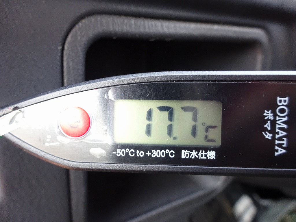 「もっと上げたらもっと下がるのかな?」と思ったので、3000回転まで上げてみると、17.7度まで下がりました!21年前の車で外気温より22.4度も下がれば充分ではないかと思われます。実際にエアコンの風を腕に受けていると、かなり冷たく感じました!ちなみにこの技を使うと当然エンジン温度は上がりますので、オーバーヒートに注意しながら使って下さい。「言われた通りやったらオーバーヒートして車が壊れた!」等と言われても困りますので、すべて自己責任でお願いします。