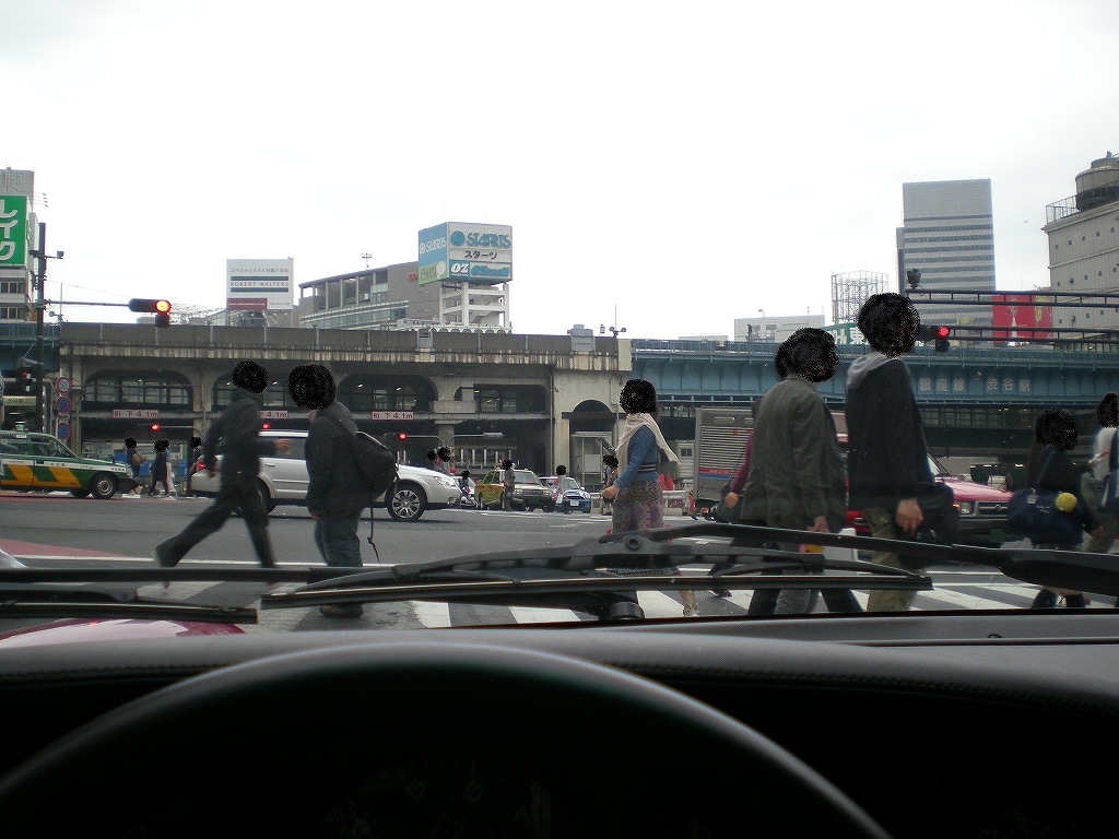 ご存知の通りぴんぽるは強烈なボディカラーのおかげでかなり目立ちます。どこに行っても友達に「夜に駅の近くいたよね?」等とすぐバレてしまいます。しかし、車好きの友達はともかく一般の車にそこまで興味の無い方からしたらどの程度興味を持つ色なのでしょうか?確かに走っていると隣の車や道を歩いている方からの視線を感じる事はありますが、どの位の割合で見られているかは解らないのでちょっと実験してみました。写真は渋谷駅の前の交差点です。大きい方の交差点では無いのですが、ここもなかなか人通りが多いので、信号待ちの時間を利用してちょっと測ってみました。ご覧の通り車にまったく興味の無さそうな女性からサラリーマン風の男性まで様々な方が通り過ぎました。大まかな数字ですが、信号待ちの間に前を通った人数が約50人、ぴんぽるを見た方が約13人と言う結果になりました。パーセンテージにすると約26%と言う数字になりました。この結果が多いのか少ないのかは解りませんが、車好き以外の方にもそこそこ興味を持たれると言う事でしょうか?今回は渋谷駅の前での結果ですが、また別の場所で機会があったら測ってみようと思います。