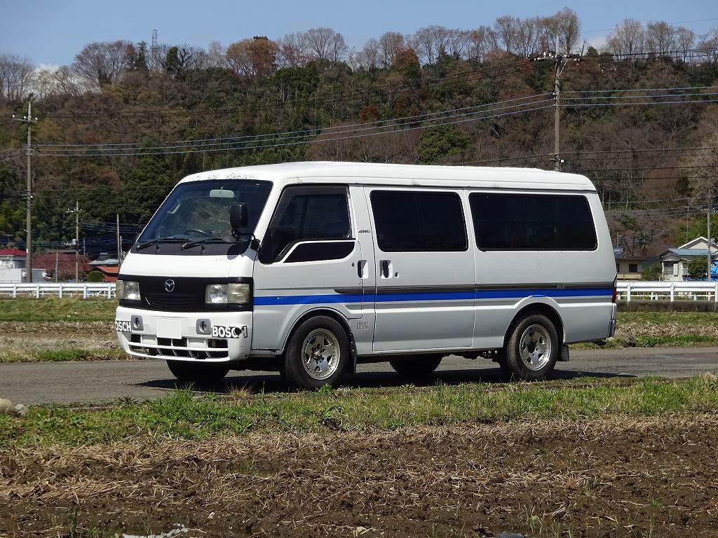 一応商品車&バイク事業用の、マツダ・ボンゴ・ブローニイバンの車検が本日完了しました。ボンゴはモデルライフが長いのでそこまで古く見えませんが、私らしく15年前の車です。正直な話この車両はバイク部門用のトランスポーターとして仕入れたので、私の趣味よりも仕事を優先した車なのです。ただ「せっかく乗るんだから、どうせなら好みの車にしたい。」と思ったので、予算内で外見が1番好きなボンゴになったのです。そんな感じで仕入れたハズなのに、いざ車両が到着して車検の準備だ何だで乗っていたらすっかり楽しくなってしまったので困ったモノです。しかも今回は「いかにバイクを安全に楽に運べるか?」や「バイクを長距離陸送する際にどれだけ快適に走れるか?」等の「道具としてどこまで機能を上げられるか?」と言う、今までに考えた事の無いジャンルなのです。車が仕上がる前は「キャンピング的な車も良いかも?」等と思っていたのですが、実車を色々見てみると「寝るのはフロントのシートリクライニングが、ほぼフラットになるからこれで良いや。」と言う結論になりました。とりあえずセカンドシートを通常の状態にしても、バイクが2~3台も積めてしまう広さなのでバイクの固定関係からやって行こうと思います。後は夏対策として、フロント2席の後ろにカーテンを設置してエアコンの効率アップを図ったり、基本的なナビやオーディオ、ETC等の設置を進めて行こうと思います。冒頭にもありますが、一応商品車でもありますので購入希望の方は店のホームページからご確認下さい。