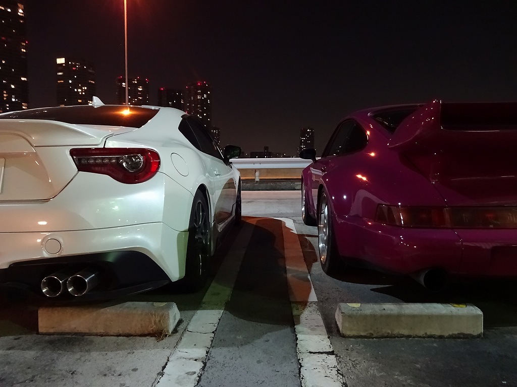 昨日の夜に、かなり久しぶりに夜の首都高に行って来ました。寒さも大分和らいで来たせいか、平日の夜中にもかかわらずかなりの台数のスポーツモデルが来ており、PA等に停まっている車を眺めているだけで楽しかったです。トヨタ・86(ZN6)に乗っているSさんと待ち合わせしていたのですが、首都高を1週だけ隣に乗せてもらって現代の車の素晴らしさを存分に堪能させて頂きました。最近乗った2000ccのNAモデルと言うと、トヨタ・セリカ(ST202)や三菱・FTOくらいだったので過去と現代の違いがかなり良く解ります。まず86はすべての状態で安定しており、「よっぽどの事をしない限りスピンしたりしないんだろうな・・・」と感じさせてくれる安心感があります。逆にセリカやFTOはきちんと乗らないと、どこへ吹っ飛ぶか解らない不安が付き纏います。もちろんセリカやFTOは古い車ですしきちんと乗られている固体とは言え、各部もそれなりにヤレていますのでSさんの新車同様の86と簡単に比較は出来ないと思いますので、あくまで参考の感想です。そんなこんなで数時間首都高にいたのですが、冬の封印期間後初めての首都高だったせいか走れば走る程ぴんぽるのエンジンが絶好調に戻って行くのを実感しました。先日メカニックの友達と話をした時にも話題になったのですが、やはりプロでも「1ヶ月くらい回せなかった状態のエンジンを久しぶりに回すと、最初はやっぱり高回転が重く回る感覚がある。」と感じるようです。やっとエンジンも最高の状態に戻りましたし、最近では首都高に行く仲間も増えたので今後はもっと行く回数が増えそうです。