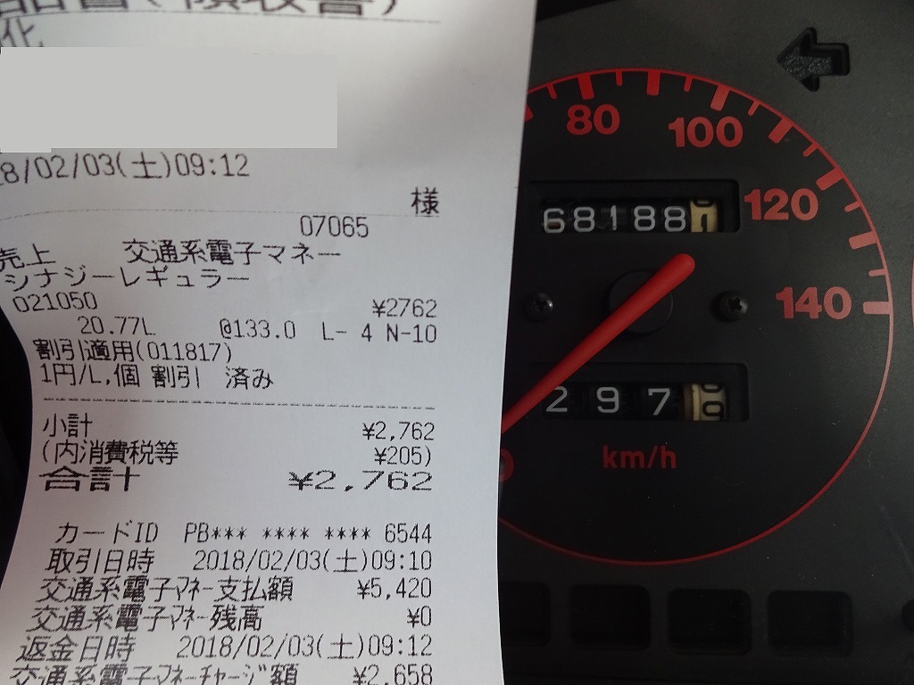 走行距離:297km 給油量:20.77L
