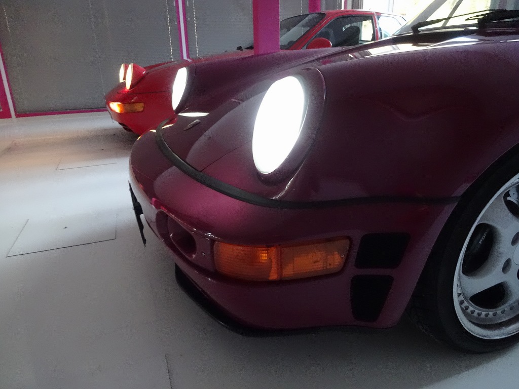 先日何かのサイトで、「1番カワイイヘッドライトを持つ車。」と言うデータを見ました。1位以外はあまり記憶に無いのですが、色々リトラクタブルヘッドライトを搭載する車等があり、最終的に1位はポルシェ・968(ポルシェ・928だったかもしれません・・・)と言う結果になっていました。何でも寝ている状態からヘッドライトがポップアップするのがカワイイらしいです。私は928や968が大好きですし「カッコイイ!」とは思うのですが、カワイイと言う感情を持った事はたぶん無いと思います。私の周囲だけかもしれませんが、「目玉が飛び出しているみたいで恐い。」や「911の眼球周辺をえぐったみたい。」等と言う、「そのコメントの方が恐いわ・・・」と言いたくなるような意見が多いです。確かに上記画像のように911と並べてみるとライト周辺のラインに起伏があるので、「えぐった」と言いたくなるのもちょっと解りますが「もうちょっと優しい言い方は無いのだろうか?」と言う感じです。ちなみにリトラクタブルの片側だけ開けている、通称「ウインク」と呼ばれる技があるのですがこれも人気のようです。リトラクタブル全盛期だった時代はわざわざ片側だけヘッドライトを開けられる、「ウインクキット」も売っていたのですが最近ではほとんど見なくなりました。考えてみればリトラクタブル自体が絶滅しているので、キットを新しく出そうと言う業者さんもいないと思います。つまり現在ウインクする固体は、昔のキットを付けてたり前オーナーさんが自分で加工した固体か、リトラクタブル自体が故障して望んでもいないのに勝手にウインクしてしまう固体かのどっちかです。「懐かしい!ウインクキット付いてるんだ!」等と喜んだのも束の間、結果的にはただの故障だったと言う事にならないように気を付けましょう。リトラクタブル時代の車はパーツが絶版になっていたりするので、簡単と思われた故障が思わぬ大きな出費につながる事も多々ありますのでご注意下さい。