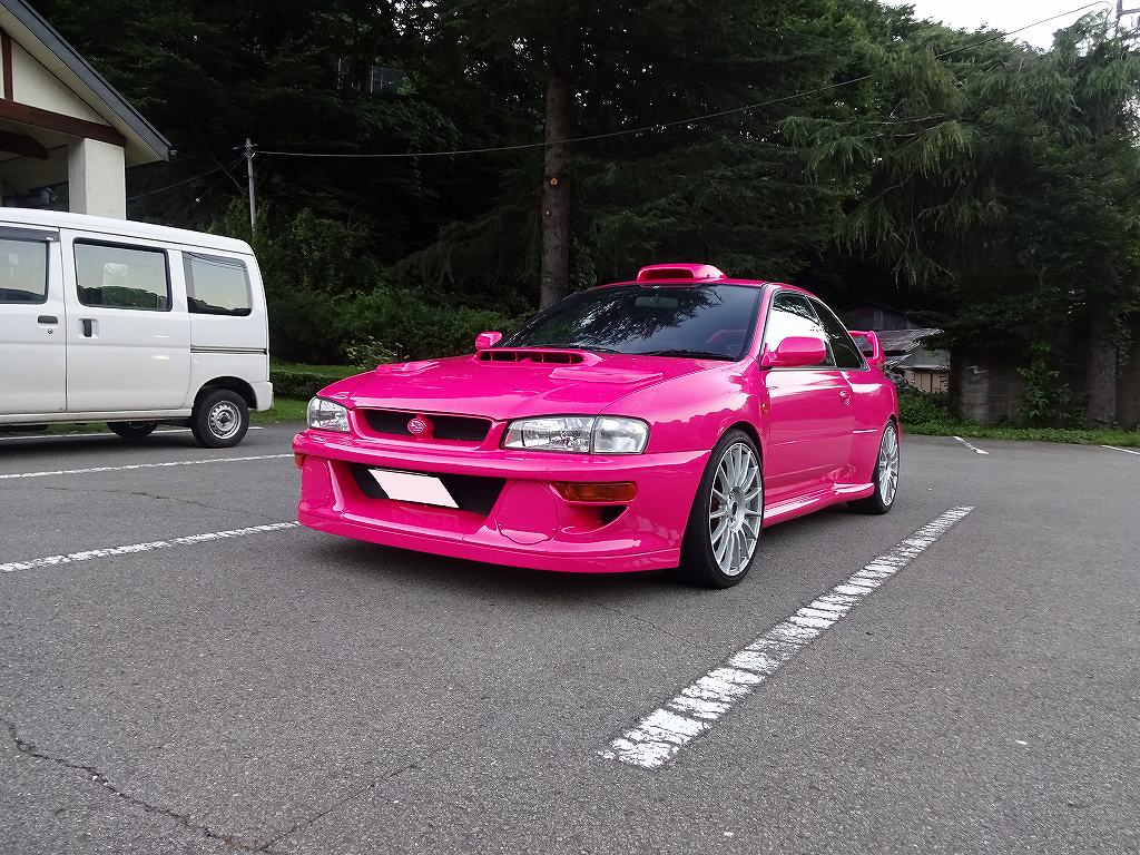 それではもっと身近な車種(と言うか自分の車。)で、ご説明しましょう。ご存知、上記画像のスバル・インプレッサ・タイプRは現在ではかなり希少な車種となっており日本全国を見ても販売中の中古車は10台前後、程度が良い固体になると新車時の300万円を超える価格で取引きされているレア車となっています。私が所有している固体はワイドボディを装備した上に、トップクラスで希少と言われる最終型なのですですが、そんな車をスバルのイメージカラーとも言えるブルーではなく、新車時の設定からまるで外れたピンクに塗ってしまったのでファンの方からは否定的な意見を言われる事が多々あります。もともとの色はホワイトだったのですが、これがブルーへの色替えだったらここまで言われる事は無かったと思いますし、売りやすさとしてもブルーの方が断然売りやすいと思いますが、それでも私はこのカラーが好きなのです。仕事上で考えるとダメでしょうが、それこそ「価値とかどうでも良い。好きな色で好きな車に乗りたい!」と言う気持ちだけだったのです。正直な話、「自身の好きなカラーになった好きな車。」が自分には1番価値があると思うので、他の人に何を言われてもまったく気にならないんですけどね・・・「新車時に設定が無かったボディカラーに塗り替えたいけど、どうしようか迷っている。」と言う方は、自身がどの程度その色に拘っているかをきちんと考えると、後悔しない答えを見付けられると思います。