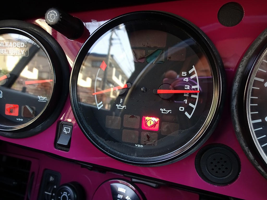 そう言えば2017年最後のメンテナンスで、ブレーキパッドとフルード類の総交換を行いました。964系はブレーキパッドの残量が少なくなるとブレーキ関係の警告灯が点くのですが、実はこの警告灯がきちんと作動する固体は結構珍しかったりします。私の周りだけかもしれませんがこの警告灯の配線を加工したり、故障したまま放置したりしているために作動しない固体が多いのです。なので、今回この警告灯が最初に点いた時は「いつもの接触不良かな?」と思いました。しかしその後数回チェックを行い、最終的に点いたままになった時には「センサーが生きてる!やった!」と言う変な喜びを感じました。古い車のオーナーさんは、「パーツの故障や減りを悲しむよりも、警告灯がきちんと作動する事に喜びを感じる。」と言う特性をお持ちの方が多い気がします。ちなみに今回のパッドセンサーは、人によっては「まだ大丈夫だろうよ!」と言いたくなるレベルの残量で作動してしまうので、ブレーキパッドをギリギリまで使う方がセンサーを加工して点かなくなるようにしたくなる気持ちもちょっと理解出来ます。実際私も「まだ大丈夫なんだけど、警告灯点いているのもウザいしどうしようかな?」と言う気持ちでしたが、最近忙しくてギリギリになった時にすぐにメンテナンスに来れるか解らないので、安全を考えて全部行っておきました。しかし、こうしてアップで見るとメーター内部の剥がれが進行してますね・・・今年はメーター内部の張替えも考えようと思います。