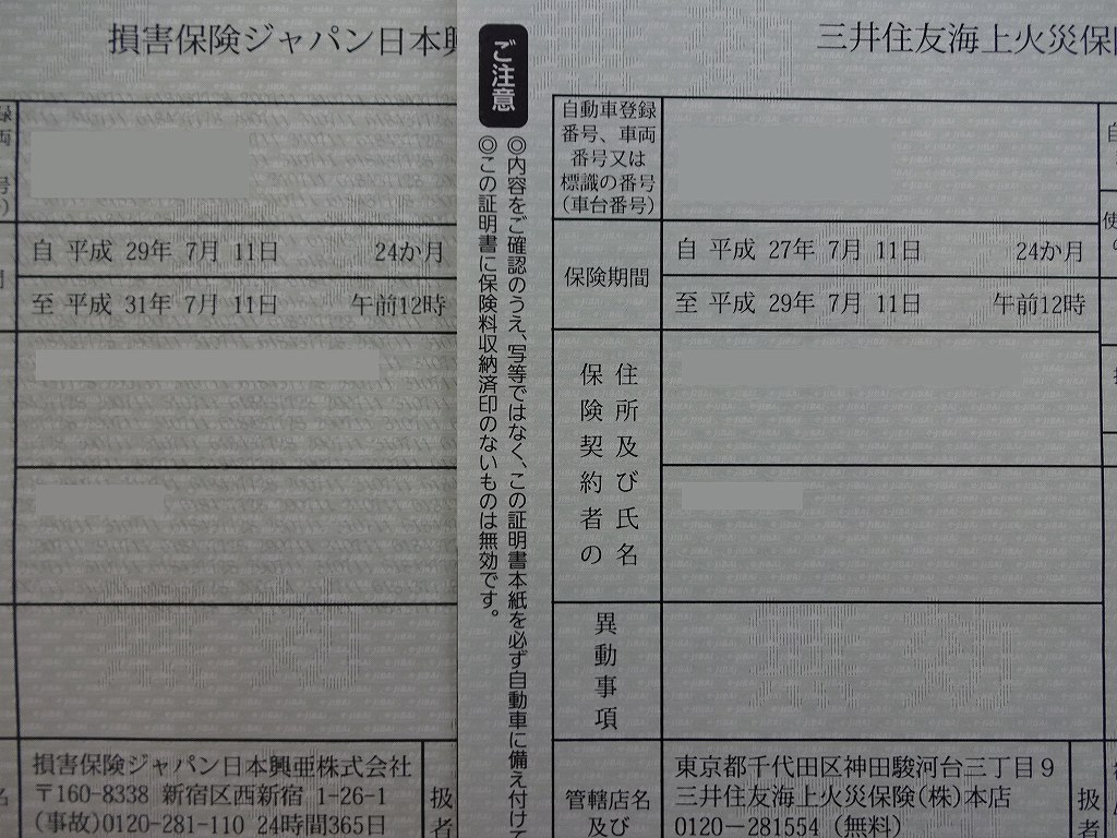 結構多いのですが、「古い自賠責保険の証書は捨てる。」と言う方がいます。もちろん期限が切れてしまえばただの紙と言っても過言ではないので、捨てても全然かまわないのですが継続車検の時にはちょっと注意が必要です。継続車検(現在も車検が残っていて、続けて車検を取る事。)は、車検が切れる日の1ヶ月前から受けられます。例えば6月30日に車検が切れる車があるとしたら、5月30日から車検が受けられるのです。その際に必ず新しい自賠責保険に加入する必要があるのですが、新しい方の期限は古い自賠責保険が切れる日(自賠責保険の期間は基本的には車検満了日から1ヶ月後までなので、上記の場合は自賠責保険は7月30日までとなります。)がスタートになります。つまり5月30日に車検を受けると、7月30日が満了日のモノと7月30日からスタートの2枚の自賠責保険の証書が手元に来る事になります。ここで「新しい保険入ったから、古い方は捨てちゃえ。」等と思って、古い自賠責保険の証書を捨ててしまうと結構面倒な事になる可能性があります。理由は簡単で新しい保険の証書が効果を発揮するのは7月30日からであって、古い方を捨ててしまうと車検を受けた日から7月30日までの最長2ヶ月間は自賠責保険の証書が無い事になってしまうのです。もちろん証書の再発行は出来ますし保険に入っている事には変わらないので問題は無いのですが、自賠責保険を入った会社を忘れてしまっていたりすると証書を再発行するのはかなり面倒ですので、新しい自賠責保険が開始されるまでは古い証書も捨てないように気を付けて下さい。