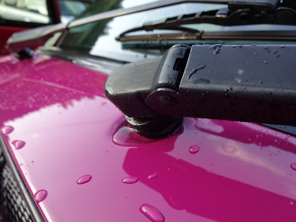 個人的な感想ですが、ポルシェは数ある輸入車のスポーツモデルの中ではかなりまともな方だと思っています。きちんとした固体を買って、相応しい乗り方と維持をしていれば全然故障しない非常にクオリティの高い車だと思います。しかし、そんなポルシェにも「この造りはないだろう・・・」と思う部分があるのですが、その1つが上記画像のワイパーの付け根の部分のデザインです。画像は洗車直後のモノですが、付け根がくぼんでいるので思い切り水が溜まるのです。当然ですが、水が溜まりやすければそれだけサビが発生する確率も高くなるので、オーナーとしては嬉しくないデザインです。まぁこの類の車は、ほとんどのオーナーさんはボディカバーをかけるのでそこまで気にする必要は無いかもしれませんが、青空駐車をしている方は注意した方が良いと思います。ちなみにボディ関係で言うと、ウェザーストリップの劣化から来るフロントウインドウとリアウインドウ下部のサビも定番なので注意です。ぴんぽるも現在交換中ですが964等の古い車は、予算に余裕がある時に思い切ってやっておくとサビが発生する前に対処出来るので結果的に安く済む場合が多いです。ヒドい個体になると内部でサビが徹底的に進行してしまっていて、ボディ全体の板金とオールペイントになってしまうので天井知らずな金額になってしまいます。全ガラスのウェザーストリップ交換は数十万円の出費にはなりますが、数年後に板金とオールペイントで数百万円の出費になるよりは全然良いと思います。