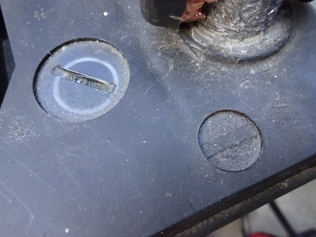 バッテリーの交換を自分でした事のある方なら解って頂けると思いますが、バッテリー端子のマークとバッテリー液を入れる場所の蓋のデザインは非常に似ている場合が多いです。上記画像はあるバッテリーの、マイナス端子のマークとバッテリー液を入れる場所の蓋の写真ですがとても似ています。今回の写真はバッテリー端子のマイナス部分と蓋の写真ですが、この蓋のデザインがプラスと酷似している場合もあります。蓋のデザインは、開ける時にプラスドライバーかマイナスドライバーで回しやすいようにこのようなデザインなのでしょうが、このデザインは気を付けないととんでもないトラブルを引き起こす事があります。ご覧のように、蓋の方が大きさが大きい場合が多いので、気を付けていないと蓋のデザインを端子の記号だと思ってしまって、バッテリーのプラスとマイナスを逆に付けてしまう場合があるのです。車種やバッテリーによっては、バッテリー側のプラス端子側に赤いカバーが付いていたり、プラスとマイナスの端子の大きさが違ったりと予防策が取られているのですが、このような対策が等が無いモノは一見するとどちらがプラスでマイナスなのか見分けが付きません。この失敗は発生率が高い上に、逆につないでしまうと電装系のダメージが結構あるのです。以前も車仲間が愛車にバッテリーを搭載する時に逆につないでしまい、コンピューターを破壊してしまった方がいました。ディーラーで見積もってもらったところ、コンピューター交換で20万円の見積もりが来たそうです。バッテリーやタイヤ、オイルの交換等の、簡単なメンテナンスを自身でやる車好きは多いと思いますが、基本的なメンテナンスや作業でもきちんと気を付けて行わないと思わぬ出費になったりしますので注意です。