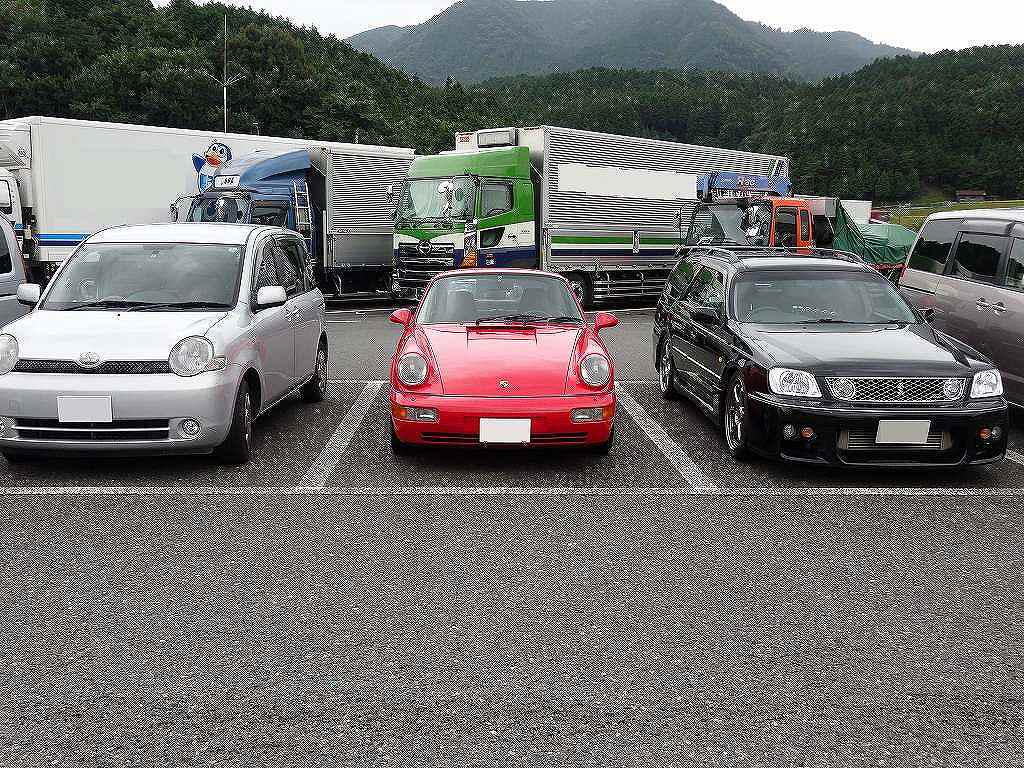 「ポルシェ・911(964)が欲しい!」と思っている方のほとんどが、初めて実物を見た時に「思っていたよりも全然小さい!」と言う感想を口にされます。前に乗っていた車にもよりますが、最近の車に慣れた方だと尚更感じるのではないでしょうか?ちなみに上記画像の左側はトヨタ・シエンタ(NCP81G)、中央は911カレラ2(964)、右側は日産・ステージア(WHC34)です。左から順番に車幅を並べて行くと1695mm、1660mm、1755mmとなりますので、911カレラ2はシエンタよりも35mm、ステージアよりも95mm狭いと言う事になります。正直な話、ブログのために画像をアップしていた私でさえ「35mmでこんな違うの!?」と思ってしまうくらいに911カレラ2は小さく見えます。たった3.5cmですが、デザインのせいなのかもっと大きな差があるように感じられます。ちなみに今回比較に使ったシエンタもステージアも現在の車から比べれば小さい方だと思うので、最新型のトヨタ・プリウス等と比べたらもっと差を感じるのではないでしょうか?ちなみに最新型のプリウス(ZVW50)の車幅は1760mmとステージアよりも5mm広いです。これだけコンパクトなボディに3600ccのエンジン積んでいるのですから、そりゃ楽しいワケです。ちなみに車重は1350kgとシエンタとほぼ同じです。そんなスペックでありながら、エンジンのパワーは250馬力とシエンタの2倍以上なのですからスゴいワケです。最近は新しくなればなる程ボディサイズは大きくなりがちですが、この時代レベルまで小さくする事は不可能なのでしょうか?リトラクタブルヘッドライトみたいに完全に禁止されているワケではないですし、最先端技術を使えば小さくて安全基準を満たすボディも出来ると思うんですけどね?