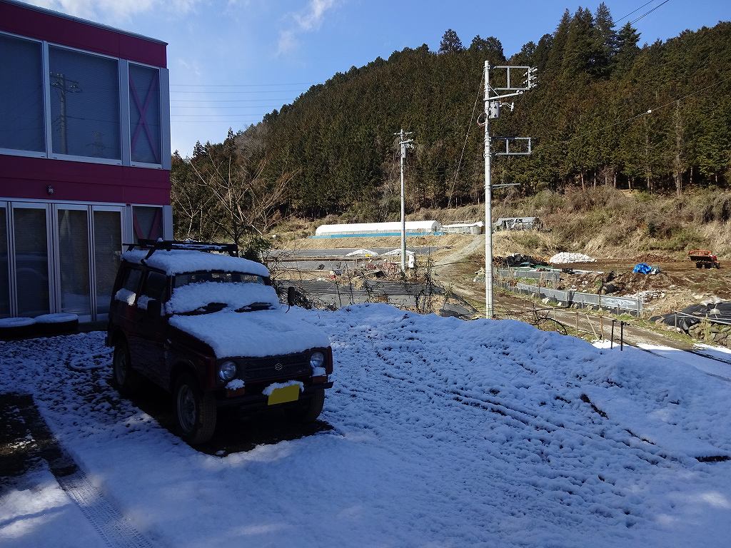 先日「やっと雪が溶けてぴんぽる乗れた!来年の雪に向けて対策考えるぞ!」と思ったのですが、乗った次の日の夕方からまた結構な雪が降りました・・・上記画像は雪が降り始めた翌日の朝の写真です。そして我が家の敷地に降った雪は、隣の斜面に邪魔されてほとんど日が当たらないので全然溶けません。