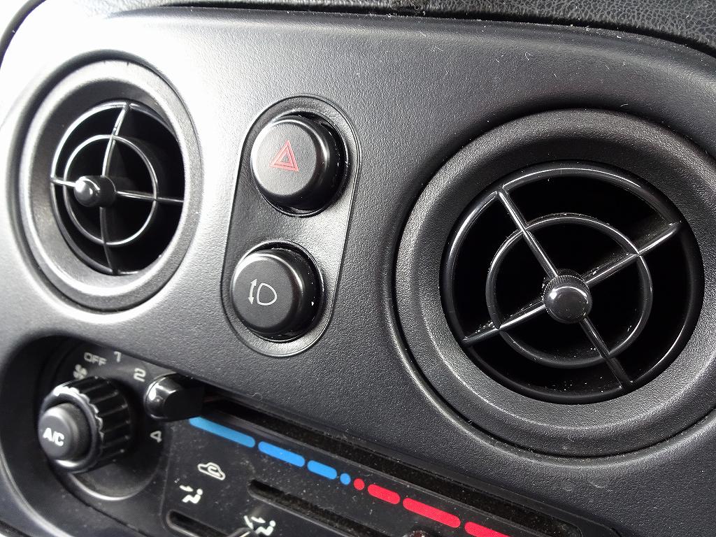 1989年の登場から既に27年が経過しながら、未だに多数のファンが存在するマツダ・ロードスター(NA6~8)ですが、この車には色々な部分で製作サイドの拘りが見えます。1993年7月にNA6からNA8シリーズ1になった際は1600ccだったエンジンを1800ccにボアアップ、ボディ剛性、クラッチ、ドライブシャフトの強化等、各部を進化させています。1995年8月にNA8シリーズ2になった時にはエンジンコントロールユニットを8bitから16bitに変更してトルクアップ、軽量フライホイールの採用やギア比を加速重視にする等、さらに走りを磨きます。このようなデータを見ると「やっぱりこの時代は売る側も買う側も、走る事に拘っていたんだなぁ・・・」と強く感じます。そして、個人的にちょっと心をくすぐる装備があります。上記画像のハザードスイッチの下にある、黒いボタンが見えるでしょうか?このボタン、リトラクタブルヘッドライトをライトを点灯させずに、上げっぱなしにするボタンなのです。当然ステアリング横の通常のスイッチでライトを点灯させれば普通にライトは上がりますが、ライトを消すと自動で閉まります。では何でこのようなスイッチがわざわざ装備されているのでしょうか?個人的には「上げたままのスタイルが好きなユーザーのため。」だと思っています。と言うよりもそうであって欲しいです。