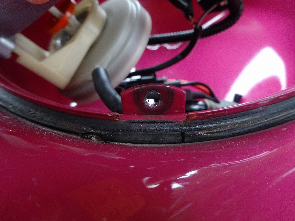 自身でイジった事のある方ならご理解頂けやすいかもしれませんが、ポルシェ・911(964)シリーズのヘッドライトはある意味とても面倒なトラップが仕掛けられています。写真はヘッドライトを外した状態の下側の部分ですが、ネジはここだけで留まっているのです。上側はずらして入れるだけなのでネジ等は無いのです。しかも、このネジは妙な角度で固定されているので、脱着にはちょっとしたコツが必要です。外す時は良いのですが、固定する時にきちんと正しい角度で入れないと、車体側のナットが潰れてしまって固定出来なくなる可能性があるのです。しかも、この車体側のナットは車体の薄い鉄板に作られているので、直す場合はナットリベット等で新しいナットを作ってやらなければなりません。ナットリベット以外の方法となると、新しい鉄板にナットを作ってやって再溶接となりますので脱着の際は細心の注意を払う必要があります。固定する時は必ずヘッドライトを片手で押し気味に抑えて、手でゆっくりとネジを回して行きます。きちんと正しい角度で入っていれば、ヘッドライトのくぼみが邪魔になるまでは手でスルスルと回せます。ただし、ヘッドライトと車体の間のゴムの弾力が原因で、ヘッドライトが少し押され気味になっているとちょっと回している時に抵抗を感じます。この抵抗を無くすために、ヘッドライトをちょっと押し気味にしてやる必要があるのです。慣れるまでは多少面倒臭いですが、この手間を省いて適当にやってしまうと上記のようなさらに面倒な修理をする事になります。私も経験がありますが、車の修理等は手間を惜しむと結果的にはさらに手間とお金がかかる事が多いのです。乗り方等でもご説明しましたが、車の維持費をなるべくかけたくないなら、手間を惜しんではいけないと思います。