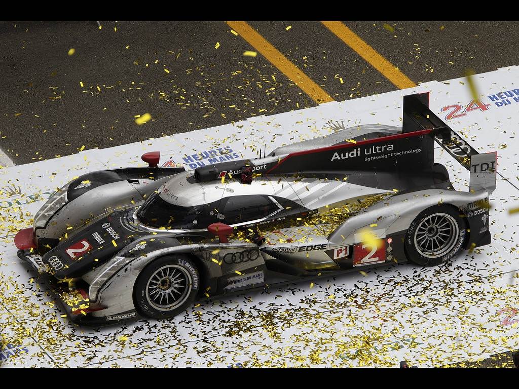久しぶりにル・マン24時間耐久レースに復帰したポルシェでしたが、結果はクラス5位、1台リタイヤとブランクを感じさせる結果となってしまいました。さすがにあまりル・マンに興味が無い私でも、ポルシェオーナーとしてはちょっと悲しかったりもします。優勝は当然の如くアウディ。しかも1、2フィニッシュで、最終ラップは2台揃って編隊組みながら帰って来ると言う余裕さだったようです。これでアウディは5連覇、そして1999年の初参戦から数えて13回目の優勝となります。ポルシェ以外でもトヨタが3位になると言う健闘っぷりでしたが、やはりアウディが強いです。ちなみにアウディは今年から復帰するポルシェにあるメッセージを送っていました。