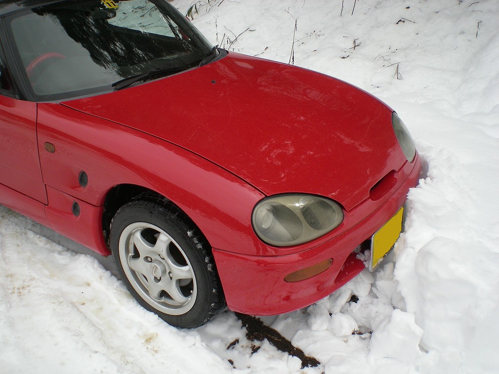 ちなみにセカンドカーとして頼りにしているカプチーノもこの有様です。フロントバンパーの高さまで積もっているので自宅からかなり離れた除雪がギリギリ終わった場所までしか入ってこれません。この写真の時はまだ良い方で、時間が遅くなると自宅までの道路が凍結してしまうので自宅まで戻って来れなかったりします。毎年この状況ですので真面目に対策を考えないといけません。ちなみに友達にこの悩みを相談したら「昼間の暖かい時間になれば雪溶けるでしょう?」と質問をもらいましたが・・・