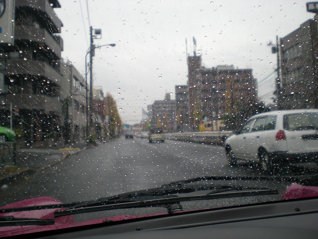 ぴんぽるはフロントガラスとリアガラス、フロントとリアの三角ガラスにガラスコーティング剤(私はガラコを使ってます。)を塗っていますが、効果は写真のようにかなりあります。この写真はブースト効かせて加速しているところなのですが雨がすべて水玉になって転がって行くのでワイパーいらずで非常に見やすいです。ちなみに両サイドのパワーウインドウで作動するガラスにはガラスコーティング剤はまったく使っていません。ポルシェでは聞いた事が無いのでどうだかわかりませんが、輸入車はガラスコーティング剤使うとパワーウインドウのモーターが焼きついたりするトラブルが出る可能性があるからです。ガラスコーティング剤は読んで字のごとくガラスをコーティングするので皮膜がガラスの上に形成されます。この膜がウインドウを上げ下げする時にウインドウのゴムの部分に対して抵抗となって壊れると言うパターンがあるみたいです。私が今までにガラスコーティング剤が原因でパワーウインドウ壊れたと聞いた話は古いロールスロイスしかないので、大抵は大丈夫だとは思いますが念には念を入れてサイドは塗ってません。サイドはあまり水はじき良くてもそこまで見やすいと言うか、そこまで見ないのでパワーウインドウのモーターを危険にさらしてまで塗りたいとは思わないです。雨の日は視界が悪くなるのでちょっとでも安全にしてドライブを楽しみたいと思います!ちなみに今回のお話も私が独自に調べたり聞いた話ですので、あくまで参考程度でお願いします。