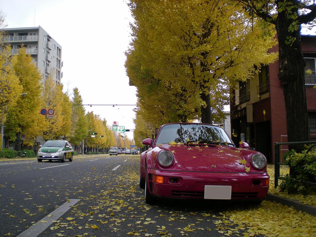 本日はタイミングが良かったのか非常にイチョウがいい色になっていたのでやっと念願の紅葉らしき写真が撮れました!紅い葉も撮りたいと言う希望もありましたが都内でそこまでキレイに紅くなる樹木があまり見当たらなかったので仕方ありません。ちなみに紅い葉の事を完全に忘れさせてくれるくらい落ち葉がすごかったです!この写真は車を停めて20秒くらいしか経ってないのにすでにボンネットの上にかなりの量のイチョウが乗ってます。