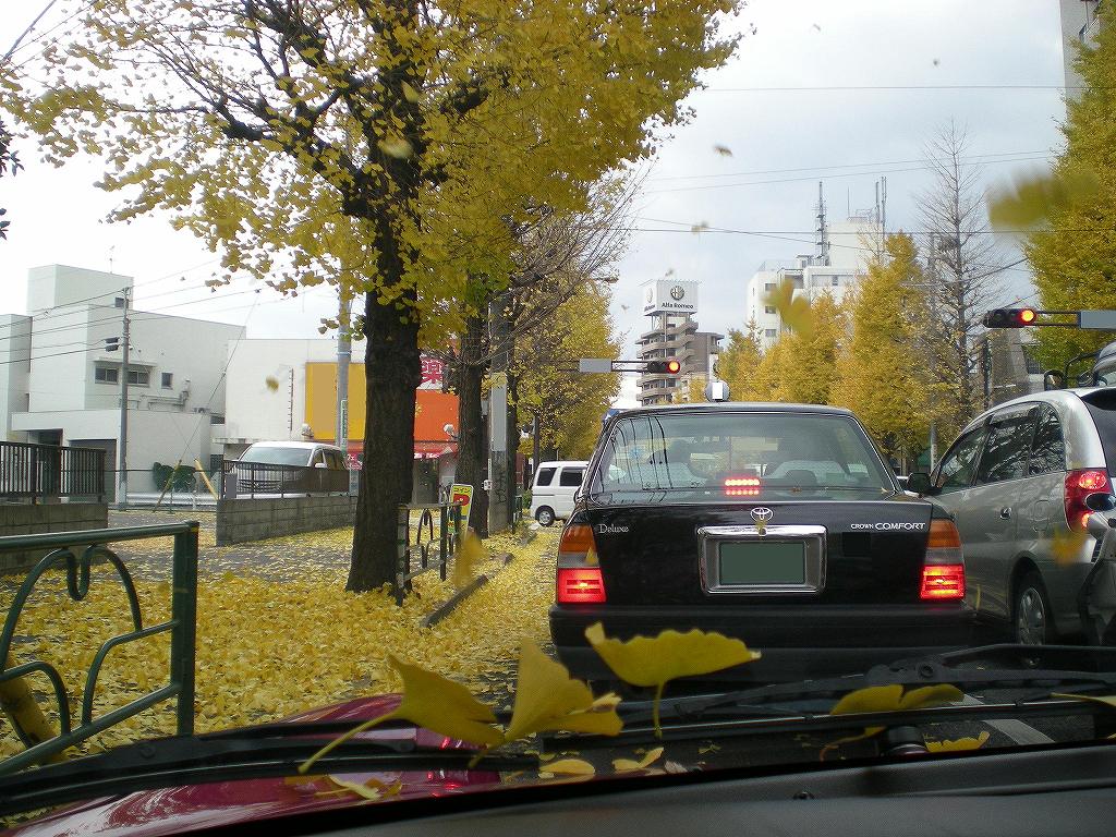 この道路は青梅街道と言うかなり大きい幹線道路なのですが1番左の車線はご覧のようにイチョウで覆い尽くされていました!落ち葉の少量なら風情を感じて楽しめるのですがここまで集まると風情どころではありません!私も写真撮ってから発進する際にちょっとアクセル踏んだらリアがスリップしてました!ある意味落ち葉も凍結並に危ないと言う事を実感しました。場所によっては1番左車線だけでなく中央の車線までかなりの量のイチョウで覆われていたので油断してるとかなり危ないです!青梅街道を利用される方はお気を付け下さい!