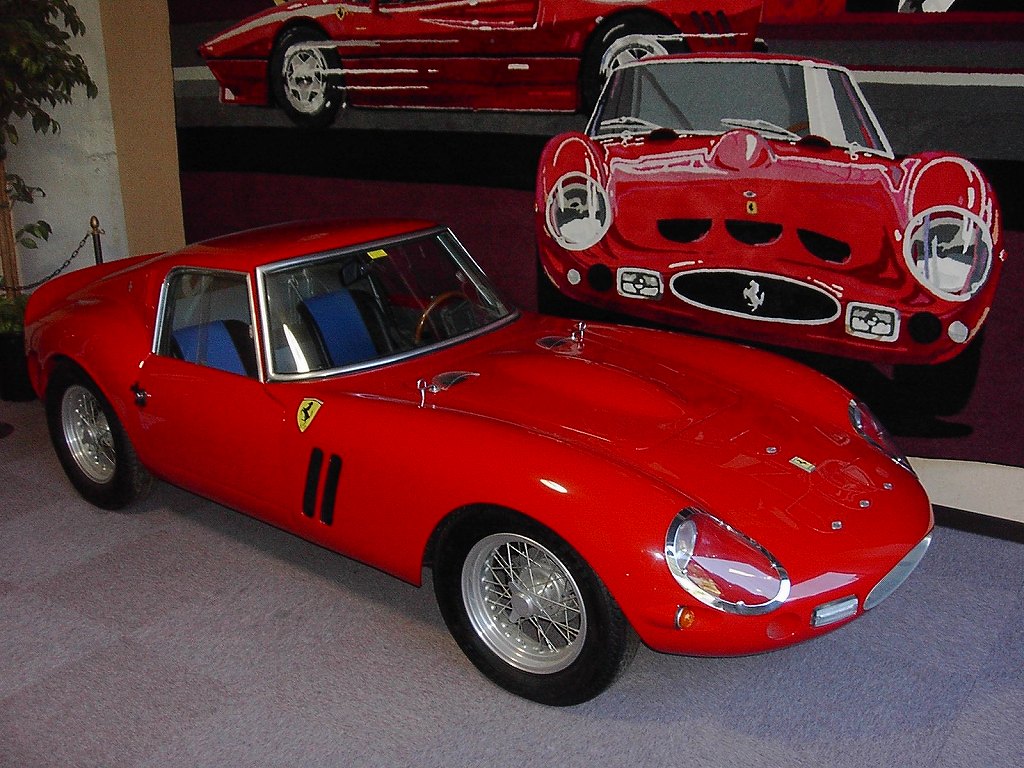 これまたみなさんご存知フェラーリ・250GTOです。このロングノーズ、ショートデッキのスタイルは素晴らしい美しさをかもし出しています!ちなみに250GTOを初めて知ったのはフェラーリではなく日産・フェアレディZ(S30)でした!!どう言う意味かと言うと初めて見て「すごくキレイな車だ!!」と衝撃を受けたのがS30フェアレディZベースの250GTOだったんです。当時はまったくフェラーリのレプリカと言う事を知らなかったので300万円と言う値段(その当時はそのくらいの値段で取引されてた記憶があります。)も逆に安いと感じるくらいでした!もちろんその後、事実及び本物の値段を知ってびっくりしました!!価値観の違いもあると思いますが個人的にはこう言う歴史的に貴重な車のラインが再現されているならレプリカもアリな気がします。賛否両論ありますのでどちらが正しいとか良いとかって言うのは置いておきますが、シェルビー・コブラやジャガー・Eタイプ、メルセデスベンツ・300SL等、人を釘付けにするような歴史的名車のレプリカは結構あるみたいです。本物は数も少ないですしいくらコレクターさんがきちんと保管していても永久にきちんと保管され続ける保障はないでしょうから絶滅してしまうくらいならこうして精巧なレプリカをたくさん残すのも1つの手段な気もします。ちなみにうろ覚えなんですが、写真の250GTOは確か実車の4/5スケールとかで本当のGTOより小さい模型みたいな感じでした。最初は本物かと思ったんですが説明書き読んだら模型って書いてあった気がします。かなり前に行った時の話で記憶もアヤフヤなのであくまで参考適度の話と言う事でお願いします。