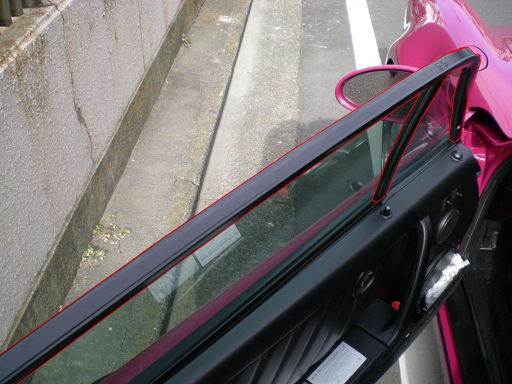 本当かどうかって言うのはまったく不明なんですけれども、ポルシェ・911RS(964)の窓枠(写真の赤いラインで囲われてる黒い枠。)の新品の値段が28万円と言うウワサを聞きました!解りにくい写真で申し訳ないのですが、窓全体、ドア全体とかではなくサイドウインドウを囲ってるこの黒い枠だけでこのお値段です!!私も聞いた時は「本当に!?」と思いましたが相手がRSとなるとこのお値段もある意味アリな気がしてきます・・・しかし相変わらずRSは値段落ちないと言うか人気あるみたいですね!最終型(確か911RS(964)は1992年式が最終型)でもすでに16年経ってるにもかかわらず状態によっては1000万円を遥かに超える価格で取引されてるみたいです。これだけの人気&希少車だからがゆえにパーツもこんな値段になってしまうのでしょうか?ちなみにこの黒い部分はドアの開け閉めを乱暴にされるとすぐにぶつかる部分でもあります。RS以外のグレードのこの枠の値段はちょっとわかりませんが、どのグレードも安くはなさそうな気がしますので注意した方が安全かもしれませんね。オーナーさんは気をつけて丁寧な開け閉めしてても車にあまり興味のない同乗者が乗る場合は特に気をつける事をオススメします。私の友達は車に無頓着な方を隣に乗せて自宅ガレージに帰宅した時に隣に置いてある自分のもう1台の車にドアぶつけられてダブルで修理するハメになったみたいです。車に対する意識は個人個人で違うので同乗者にも注意が必要ですね!