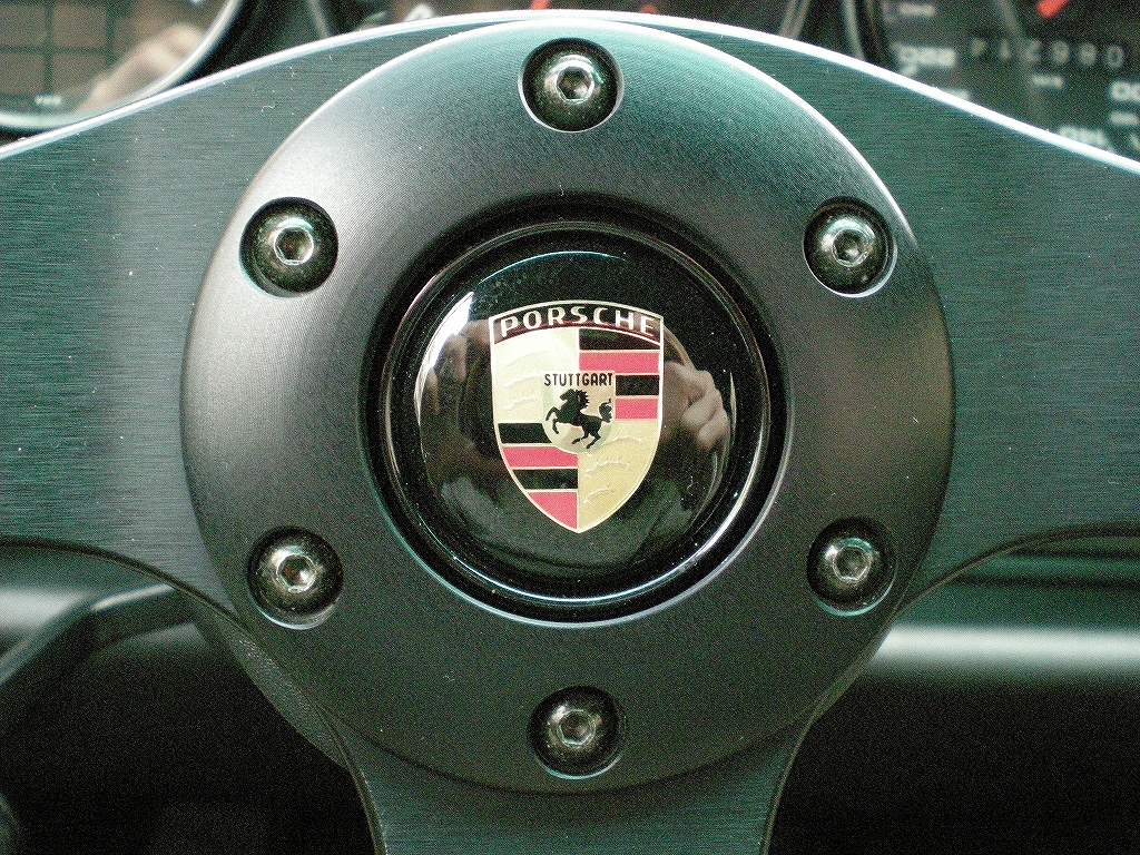 私は車に乗っいる時にホーン鳴らすのは、「あからさまに危険な運転する他車に自分の存在気が付かせる時。」、「すれ違いとかで道を譲って(お礼の意味で軽く鳴らして手上げてすれ違います。)もらった時。」、「友達と一緒に走っててお互い帰るために別方向に行く時の挨拶。」、位しか無いです。この程度しか使わないのですけれどもお礼や挨拶みたいな感じで使う事の方が多いので、私なりにホーンの非常に重視するポイントがあります。それは軽いタッチできちんと軽く、短く鳴らせるかと言うポイントです。今からする説明はちょっと解りにくいと思うのですけれどもご容赦下さい。まずぴんぽるのホーンはステアリングの中央(写真真ん中のポルシェクレストがホーンです。)にあります。これを強弱つけて押す事によって音が出るんですけれども、たまにこちらのイメージの長さと音量で鳴ってくれない車があります!こちらが「ファン!」と言う感じの短めの音で鳴らしたいとイメージして軽く押したら音が出ない、「もうちょっと強く押さないとダメかな?」と思って力込めると「ファーーーーン!!」と言う感じで鳴ってしまうみたいな感じです。ちなみにこう言うホーンを搭載した車が昔実家にありました。その車はとあるメーカーのかなり上位にランクされるグレードのセダンだったんですがホーンだけは最後まで使いこなせなかったです・・・「道譲ってくれてありがとう!」と言う意味で軽く鳴らそうとしても「ファーーーーン!!」、友達と一緒にお互いの車で遊びに行って帰りにバラバラの方向に行く地点で「またね~」と言う意味で鳴らしても「ファーーーーン!!」・・・私も昔はホーンのなんて別に何でもいいくらいに考えてたんですがこの車に乗ってからはホーンのタッチは結構重要視するようになりました。せっかくお礼や挨拶で鳴らしてるのに相手にイヤな思いさせるような音しか出なかったらお互いにイヤな気分になりますよね?ちなみにぴんぽるは非常に思い通りに鳴ってくれるのでかなり使いやすいです!