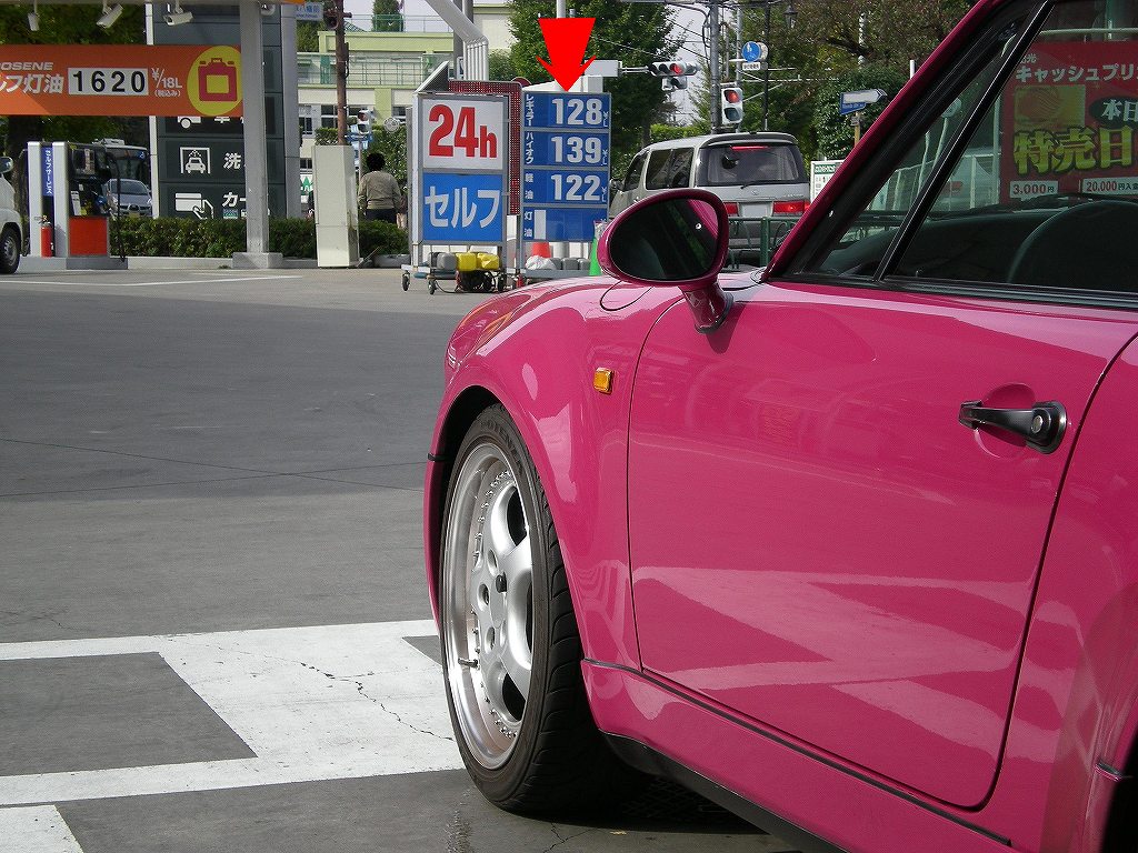ちょっと見難いかもしれませが赤矢印の指してる数字は見覚えありますでしょうか?偶然にもレギュラーとハイオクはこの日とまったく同じ値段です!4月3日から上がって上がって、ピークではハイオクが200円/Lまで行きましたがそこからまた下がって来て、7ヶ月と7日経った今日まったく同じ値段を記録したと言う事ですね!過去のブログでも言ってますけれども、不思議な事に140円が160円になっても別にそこまで気にならなかったんですが160円を超えて来るといきなり「高い!!」と言う気持ちが強くなってきます。まったく理由は不明なんですが私の高いと思うボーダーラインはプラス20円までと言う事なんでしょうか?ちなみに170円をさらに超えて180円とかになった時は高いとか高くないとかって言う前にどうでもよくなってきてました!!あとちょっと意外だったのは超高額帯の車にお乗りのオーナーさんの言葉でした。仲良くして頂いているとある車(新車で2000万円オーバー、諸費用+オプションのコンビネーションで総額3000万オーバー!!)のオーナーさんとガソリン高い時にお茶したんですが、話の最中にポツリと「最近ガソリン高くてイヤになるねぇ・・・」とおっしゃってたのがすごく意外でした。何かイメージ的に2000万オーバーとかの車乗られる方って「ガソリン代?いくらでもいいよ?」みたいな感じかと思ってたんですが人によっては違う(もちろんそう言う感じの方もいらっしゃると思います。)みたいです。人によって高いとか安いって感じるのポイントは違うのだと思った一瞬でした。