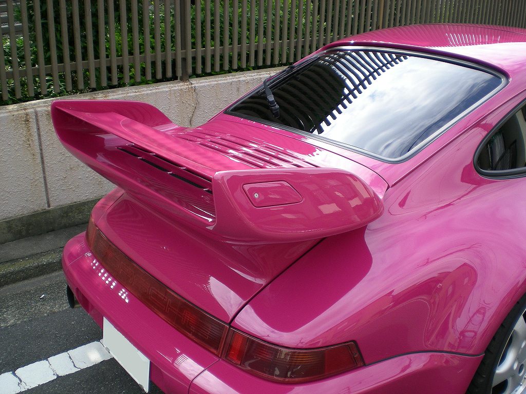 最近のスポーツ車のスペック表やインプレッションを見るとだいたい空気抵抗値(CD値と表されてる数字。)が載ってます。現在では当然のごとく、どのメーカーも出してる数値なのですがぴんぽるの時代はあんまり出てなかったようで、ぴんぽるのCD値がわかりません。また、最近のリアスポイラーが付いてる車は大体「時速○○km時に○○kgのダウンフォースを発生。」と載っているのですがこれまたぴんぽるは不明です。もちろんわかったところでどうと言う訳ではないのですが、オーナーとしてはちょっと興味あります。これだけ大きいウイングですからかなりのダウンフォースを発生してくれるのではないでしょうか?ちなみにぴんぽるはこの大きいウイングと、RRと言うレイアウトのアンバランスさのおかげで高速になればなるほどフロントの接地感がなくなります!これをスポイラー等のエアロパーツで何とかしようとしたらやっぱりリアウイングと同じ、もしくはもっとダウンフォースを得られるエアロパーツをフロントに付けないといけないと言う事でしょうか?以前にフロントのボンネットのところにGTウイングみたいなスポイラーをつけてるポルシェを見た事ありますがあそこまでやってどのくらいの接地感が得られたのか非常に気になります・・・高速域でもフロントに加重きちんとかかって安心して走れるのは魅力的ですが、外装を変えずにこのままでやるとなるとなかなか現実には難しいかもしれませんね・・・