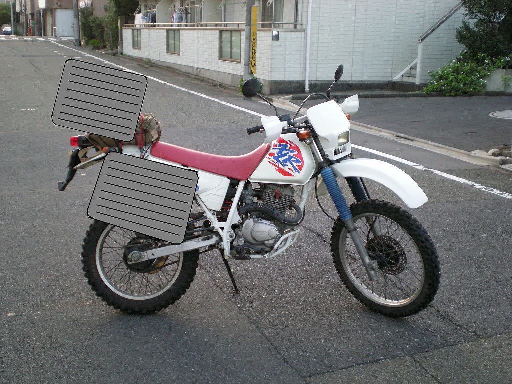 通勤や近所のチョイ乗りに大活躍のXLR125なのですが積載能力がほぼ無いのがちょっとキツイです。通勤で使ってるのでいきなりの雨用にレインコートを搭載してますが、写真のようにリュックに入れて後ろに縛りつけておくしか今のとこ手段がありません・・・そろそろ我慢できないのでトップボックスを付けようかと考えてますが、個人的に上にだけボックス付けるのはちょっとバランス悪く感じるのでサイドにも付けたいです。ところがサイドにボックスをつけようと考える人がいないのか、サイドボックス用のパーツなんてほぼ存在しないみたいです・・・「無いなら作る!」と言う事で自分で何とかしてサイドボックス付けてみようと思います。