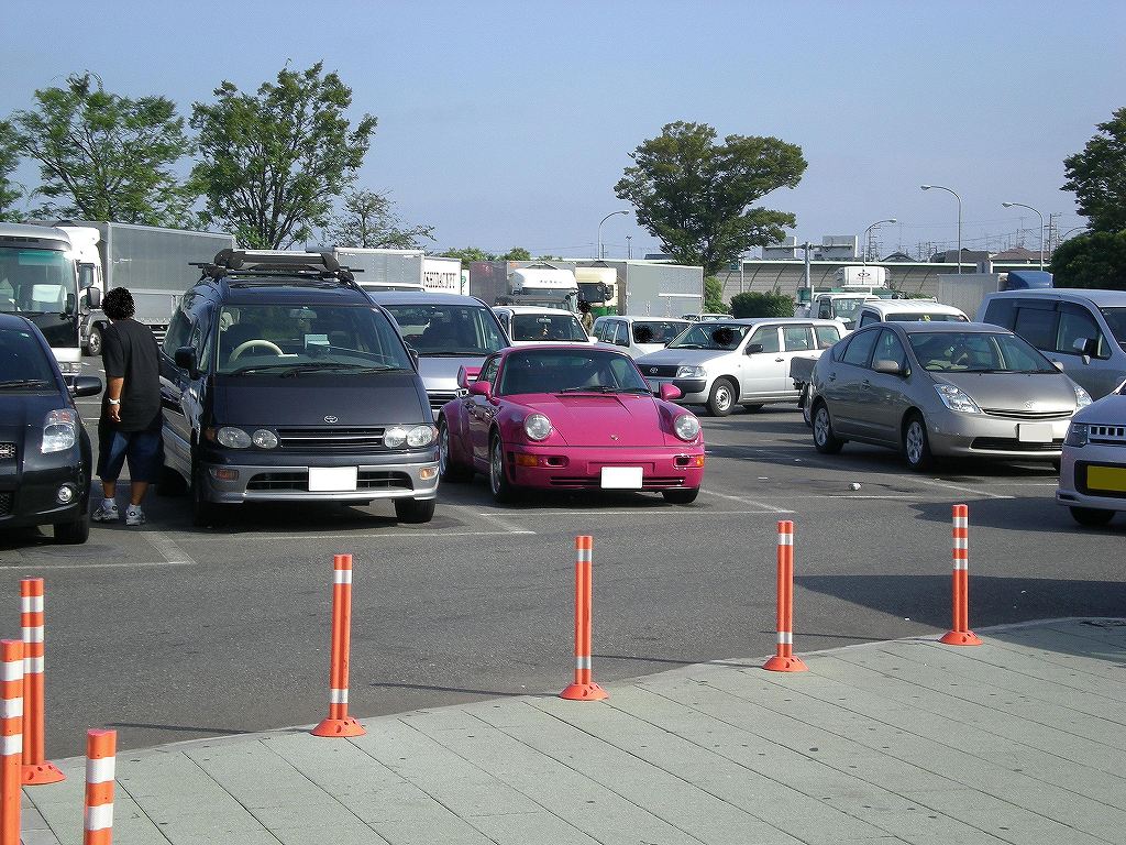 ガレージとかお持ちの方はガレージでお茶でも飲みながら愛車を見てゆっくりする時間を楽しむ事は簡単ですが、私のようにギリギリの大きさのガレージ(しかも賃貸です。)ですとまずガレージ内では不可能です。でも愛車を眺めながらお茶してのんびりと言うのは車好きにとっては至福の時間だと思ったので場所を変えてやってみました。まず外でお茶出来るところ(写真は海老名SAです。)に行ってお茶する場所から見えるところに車を停めます。そして後はお茶してのんびり眺めるだけなのですが・・・