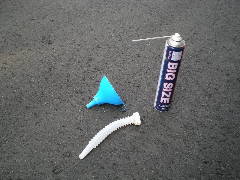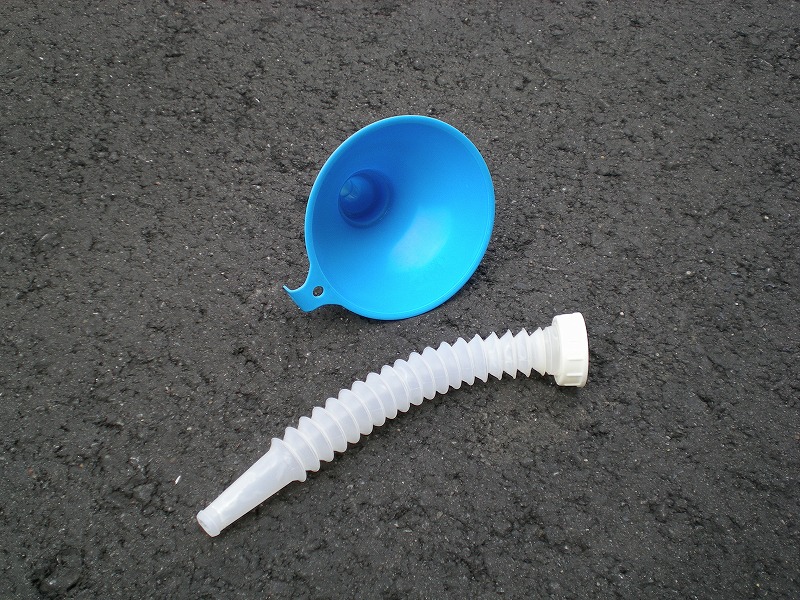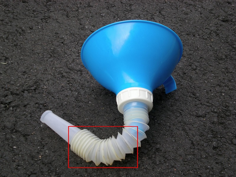 こちらがオイル補充用に使ってるジョウゴです。赤枠の中が余ったオイルのせいで黄色く汚れてるのがわかるでしょうか?別にこのまま使ってもまったく問題ないんですがやっぱり気分的によろしくないですし、時間もあったのでキレイにしました。