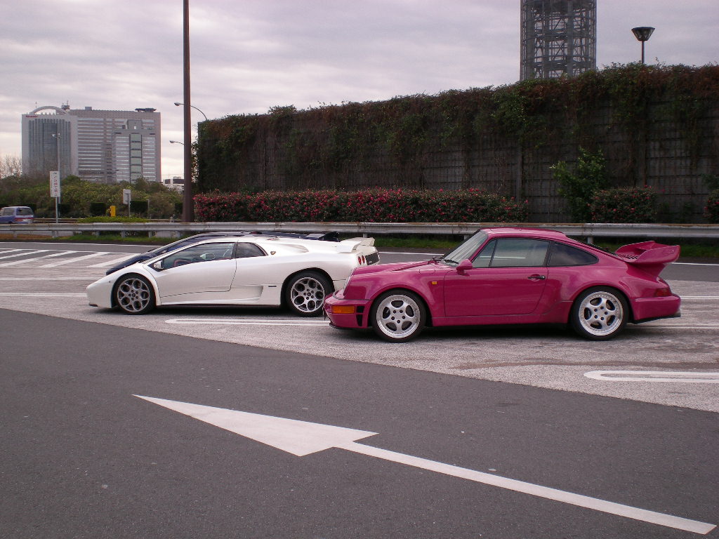 以前にも言いましたがぴんぽるはどんな天候だろうと(洪水や、幹線道路が埋まるくらいの積雪時は除きます。)出かける用事があれば普通に使ってます。ポルシェは別に雨だろうと雪だろうと普通に走れるし壊れもしません。最近の輸入スポーツカーは信頼性が軒並み向上してきてるみたいで、以前では考えられないような車が雨や雪の日に走ってるのを見かけたりします。写真はアストンマーチン・V8ヴァンテージのオープンモデルだと思いますが、アストンマーチンは10年前くらいまでは「超高級車な上にすぐぶっ壊れてフェラーリより全然怖い!」みたいな話しか聞いた事なかったんですけれども、現行型になると普通に雨の中でも走れるみたいですね!フェラーリも昔は「雨降ってる時に乗って雨漏りしたからディーラーに文句言いに行ったら「ウチの車を雨の日に乗るなんて何考えてるんですか!」くらいの勢いで逆ギレされた!」なんて話も聞きましたが、今では普通に新車保証がついていますよね・・・スーパーカーと呼ばれる車の性能や信頼性がどんどん上がって行くのは非常に良い事だと思いますが、デザインは昔の方が個人的には好みです。