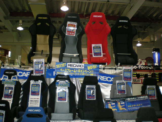 最近は昔に比べてレカロシートもかなり手軽に手に入るようになってきてます。写真は某大手カーショップのシートコーナーですが、限定モデルもちらほらと見えるくらいの品揃えです。しかも大手の力なのか、かなり安くなってますね・・・行くたびに思うのですがカー用品店はやはり車好きにとっては悪魔のような店です。しかも限定レカロまで安くなってるとなるともうどうにもなりません・・・まだ今は財政上の問題で無駄な買い物はしませんがちょっとでも余裕ができればすぐ買ってしまいそうな自分が怖いですね。独身の私ですら怖いのですから車好きなご主人を持つ奥様が「カーショップなんて本当にいらない!」って叫ぶ(ちなみにこのコメントは実際に車好きなご主人を持つ奥様の声です!)のもわかる気がします。