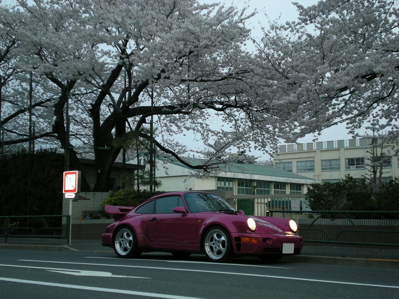 昨日は都内はすごい強風ですべての桜を吹き飛ばすくらいの勢いでした。完全に散ってしまう前に桜とぴんぽるでぴんくの競演をしてみました!中途半端な時間に撮影したので夜桜でもなければ昼間の桜でもないと言う明るさでした。こうして見るとあんまり桜と色は一緒じゃないように見えますと言う事はぴんぽるはぴんくじゃないと言う事なんでしょうか?まぁ一応ポルシェ自身は「ルビーストーンレッド」と言っているので赤なんでしょうね。