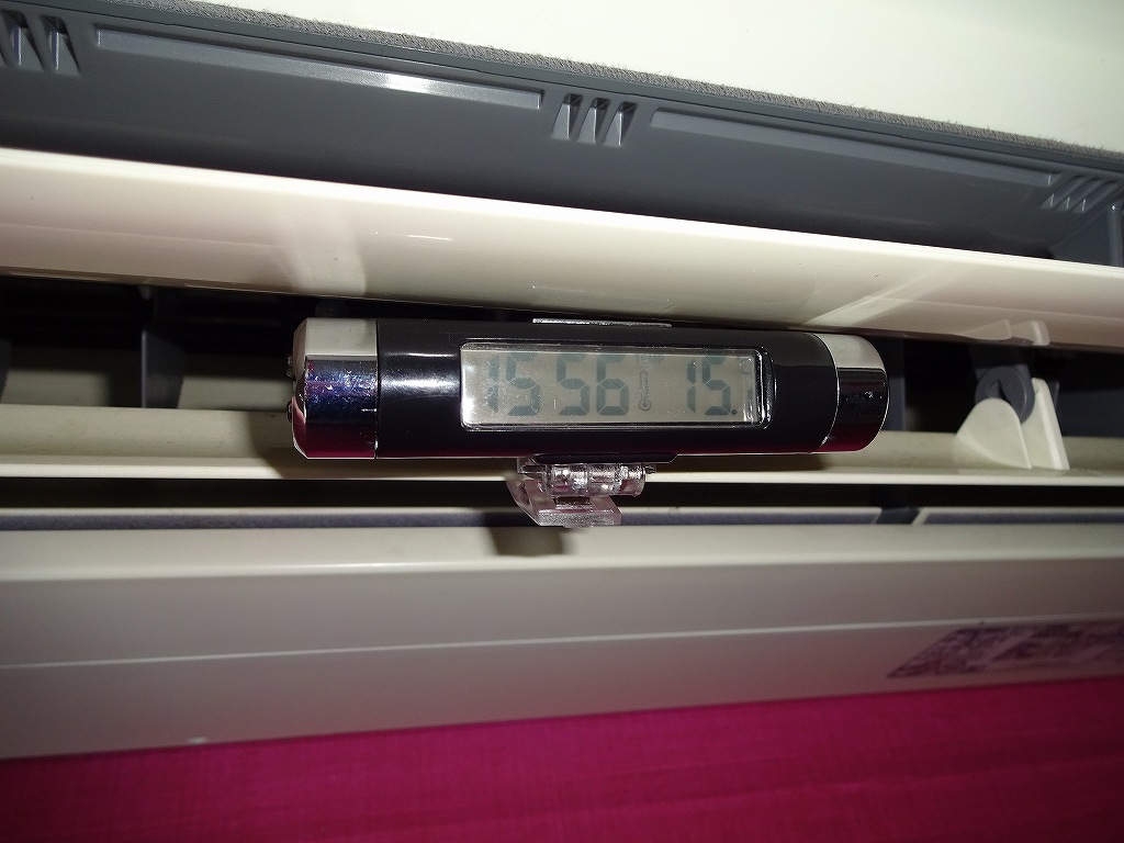 最近周囲から「エアコンメーカーに就職でもすんのか?」や、「エアコンの亡霊に取り憑かれてる。」等とウワサされるくらいに愛車達のエアコン能力の向上に努めています。今までは「乗っていて快適さを感じるくらいに効いていればOK。」と言う感じだったのですが、温度計できちんとした数値を見るようになってからは「もっと涼しくならないのか?」と言う、チャレンジ精神のようなモノが出て来てしまっています。現在ぴんぽるは次のエアコンカスタムの準備中ですが、アルシオーネSVXはこの猛暑の中でも寒いくらいの冷風が出て来るのでカスタムはとりあえず完了の状態です。今まで私が実感した上でまとめたデータによると私が「涼しい!」と感じるのは20度前後からで、10度近辺になると「寒い!」のレベルになります。10度近辺の風をずっと腕に当てていると腕の感覚が無くなって来るので、これより下の温度になると身体を壊す可能性もあります。こんな感じで車の中の快適さを上げて行っているのですが、ここで「家の中のエアコンはどうなんだろう?」と言う疑問を感じました。建物や環境にもよりますがほとんどの建物のエアコンは、部屋に入った瞬間に「涼しい!」と感じるので、どのくらいの能力なのか気になったのです。もちろん建物の構造やエアコンにもよりますが、実際のところ家庭用エアコンの吹き出し口温度はどのくらいなのか調べてみました。測定したのは私の自宅(軽量鉄骨構造で外周の壁は総ガラス張り。)ですので、かなり普通の住宅とは条件が違いますのであくまで参考程度です。ちなみに我が家はすべてのガラス面に断熱用ブラインドを装備していますので、それなりに外気温による影響は遮断されています。エアコンは2011年式で冷房の定格能力2.8kwの、一般的な木造住宅の8畳くらいの部屋を想定しているモノを使っています。エアコンをフルパワーにしたところ、上記画像のように吹き出し口温度で15.1度が最低でした。この測定した部屋はエアコンの真下にパソコン用デスクがあるのですが、この温度でしばらく直接風を受けていると全身がダルくなって来ますので、やはり身体に直接当たる風は20度前後が良いのかもしれません。もちろん狭い車内の車と、それなりに広さがある建物用エアコンとでは色々と条件は違いますが、出て来る風の温度による感じ方は同じだと思います。こうして考えると、車の10度以下の風と言うのはかなりのハイパワーに感じます。「車内を最大に涼しくした車に乗り、コンビニ等で降りて買い物をしてまた車に乗る。」と言う、暑い場所と寒い場所に交互に入るのはかなり身体に負担がかかるみたいなので、エアコンの能力が最強クラスの日本車にお乗りの方は、温度の下げ過ぎにご注意下さい。