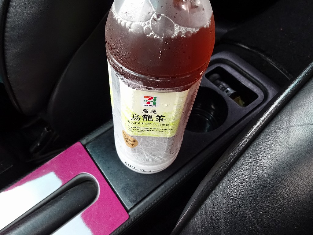 最近の飲料水は「ステルス値上げ」と、妙なネーミングを付けられるくらいに地味に値上げしているそうです。簡単に言うと「値段を上げると購入意欲が落ちるので、値段はそのままで内容量を減らし原価率を下げる。」と言う方法を取っているため、「目に見えにくい値上げ。」の意味を込めて「ステルス値上げ」等と呼ばれているそうです。ちなみに私が良く買う烏龍茶は、減るどころか増えている気がします。メーカー等をそこまで良く確認していないので、いつから買っているかは不明ですが上記画像の烏龍茶は600mlで100円と言う破格の値段となっています。最近のペットボトルドリンクは500mlで130円くらいが平均的な価格だと思いますので、この金額でこの容量はとても嬉しいのです。しかしこの烏龍茶、容量が増える事によってペットボトルが大きくなり、ドリンクホルダーに収まらないと言う微妙なマイナスを生み出しているのです。ちょっと解りにくいですが、上記画像のように一応ドリンクホルダーに収まるのですが、本当に下部の3mm程度しか入らないのです。低速ならば大丈夫なのですが、ちょっと速度を上げるとすぐにペットボトルが転がってしまうので、運転中は非常に煩わしいのです。ちなみに最近のドリンクホルダーはトランスフォーマーばりに可動するモノが多いので、普通の缶からペットボトル、中には1リットルの紙パックの飲み物までホールド出来るモノもあるそうです。そこまで飲み物に拘りは無いので、別にドリンクホルダーを新調しようとは思いませんがちょっと羨ましかったりします・・・