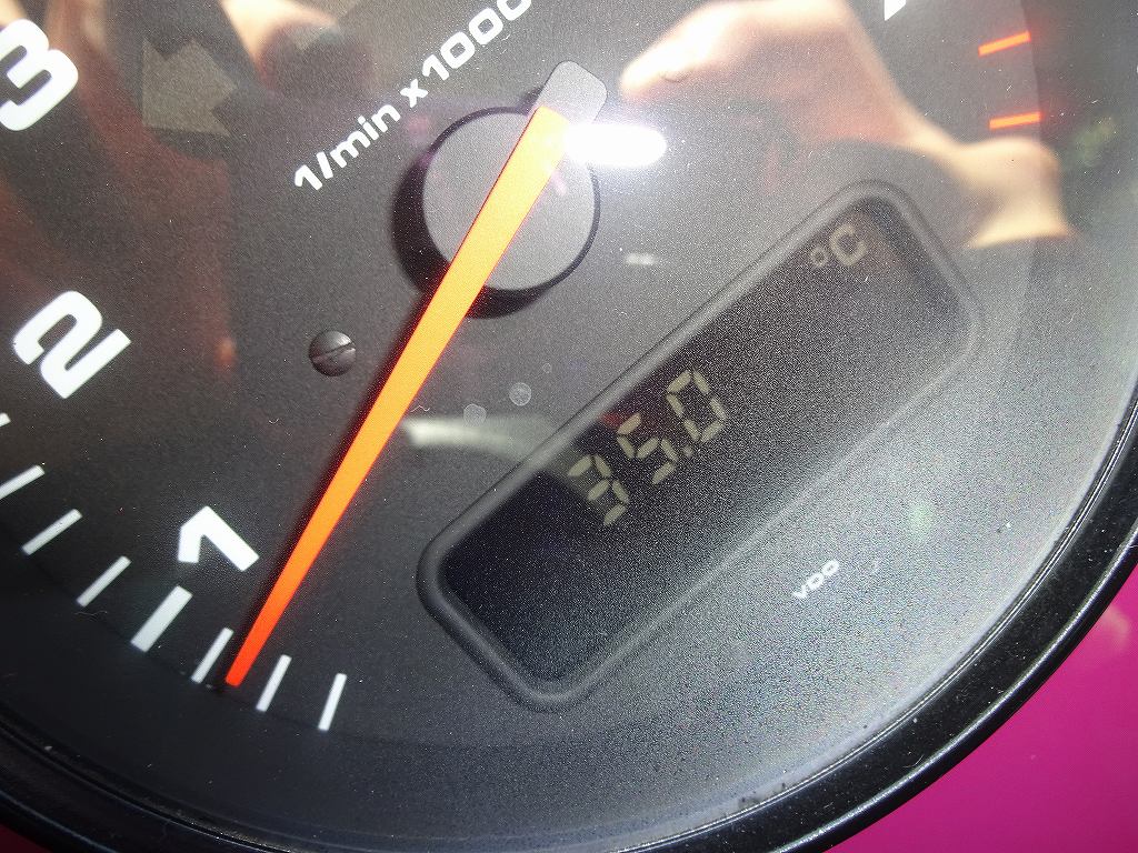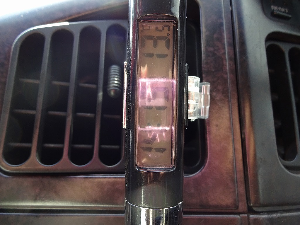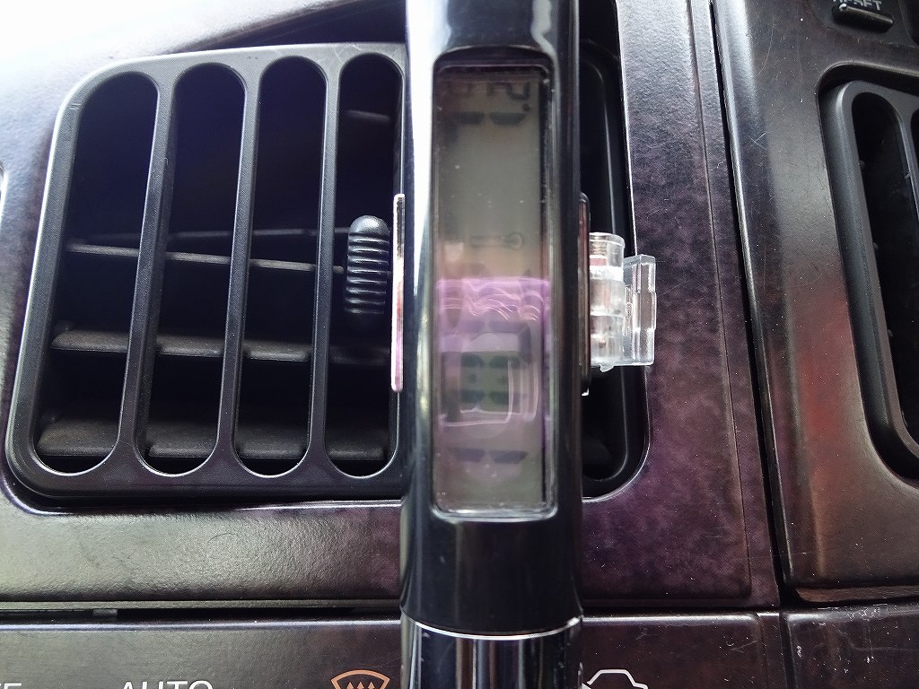吹き出し口温度で20度!予想ではもうちょっと冷えるかと思ったのですが、現状ではこの温度が最低温度でした。「気温35度の日本の猛暑日に、走行風ゼロの静止状態の日向で計測。」と言う、これ以上に無い最悪の条件でこの数値ですのでまぁ悪くはないと思います。ちなみに日本の天気予報の発表気温は、日陰の土の上での計測温度ですので日が当たる場所では40度を超えます。車のように鉄で出来たモノはさらに熱され、ボディ表面はとんでもない温度になりますので許容範囲内だと思います。そして今回こうしてエアコンの温度を測っている事によって、吹き出し口温度はそれ程低くなくても涼しいと言う事に気が付きました。個人的なイメージですが「涼しいと感じる温度。」と言われたら、10度以下くらいのイメージを持っていたのです。しかし、現実的に車に乗ってみると今回計測した20度でも充分涼しかったのです。当時は正確に測定していなかったので、ぴんぽるに乗ったばかりの頃の吹き出し口温度は不明ですが、間違いなく当時と同じようには冷えていますので同じくらいの温度だったのではないかと思います。もちろん寒暖の感じ方は個人によって異なりますし、今回使った温度計に誤差はあると思いますので、上記データはあくまで目安としてご覧頂ければと思います。